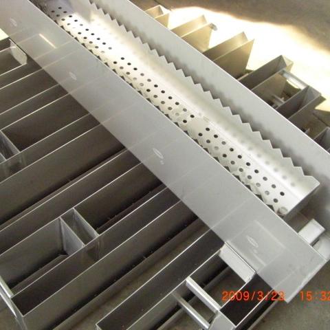 目前國(guó)內(nèi)外的收集再分布器大體為4類(lèi)0斜板式收集器加排管式分布器該型式在化工中應(yīng)用較多其優(yōu)點(diǎn)為通量大分布較均勻但容易堵塞。2上部斜板式收集器,下部為二級(jí)槽式分布該分布器分布孔設(shè)于兩側(cè)面沉積物在底部能防堵,目操作彈性較大但各分布槽較難保持同一平面,影響均勻分布。該分布器由收集器及分布器2部分分開(kāi)組成在塔內(nèi)占高度較高,一般大塔高度為2m左右,造價(jià)相應(yīng)較大。3槽盤(pán)式收集再分布器,該分布器收集及再分布連成一體,所占高度較低,具有槽式分布器的優(yōu)點(diǎn),防堵及操作彈性大,但該分布器在塔內(nèi)壁需焊一支撐圈,以固定收集分布器,其通量不如上述2種分布器的通量大在大型塔應(yīng)用中需加托梁支持。4托盤(pán)式收集再分布器該分布器在塔內(nèi)壁不焊支撐圈在分布器底板上焊有比塔徑稍小的收集圈通氣框上懸掛有集液角鋼,收集液體后流人分布槽內(nèi),所有收集槽相連通使收集分布器內(nèi)液位持平分布孔設(shè)在分布槽兩側(cè),該分布器既能防堵且操作彈性大分布均勻,氣體流通面積達(dá)52%以上。